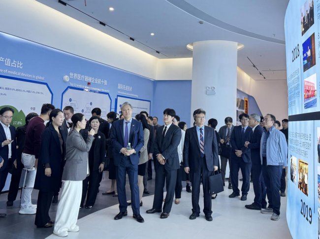 2026年2月2日下午,韩国驻华大使卢载宪率团到访海凭国际·海口高新区医疗器械园,重点考察园区韩资企业运营与成长情况。本次考察由海口市政府与高新区管委会共同组织,旨在进一步推动中韩两国在生物医药与高端医疗器械领域的产业协作与项目落地。海口市政府副市长吕小蕾、高新区管委会副主任宁瑜晖等陪同讲解。双方围绕海南自贸港在医药研发创新、医疗器械方面,开展了深入的交流。