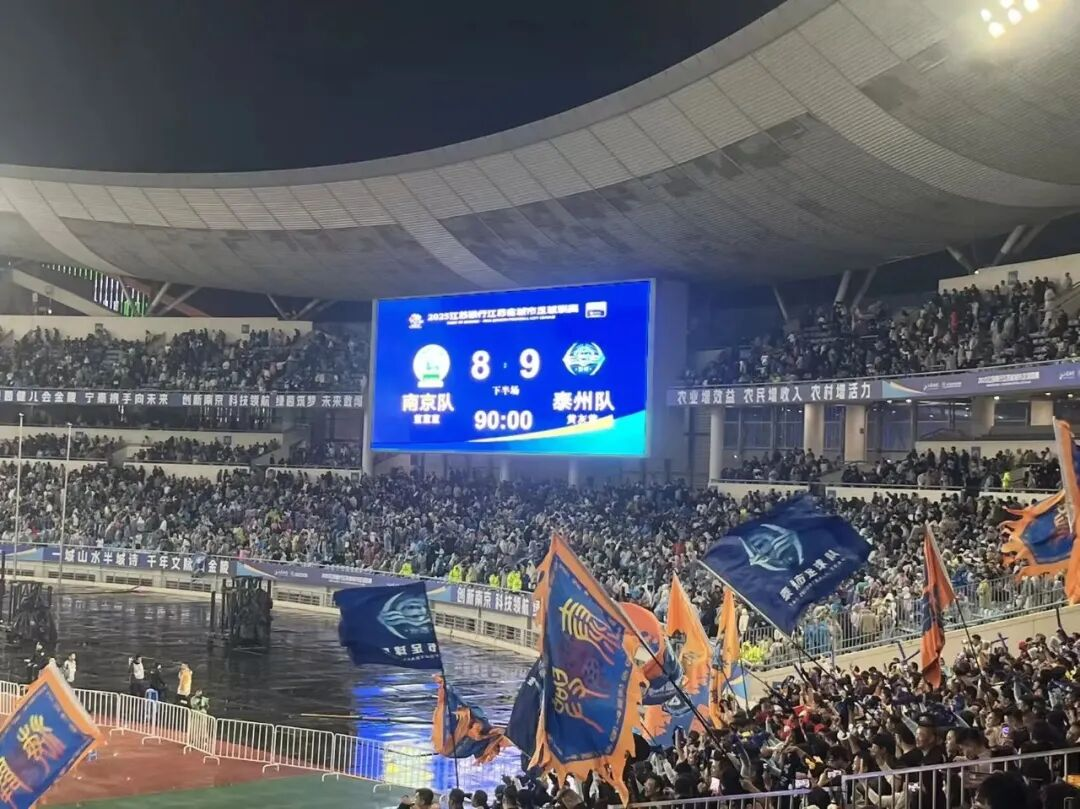 10月18日夜,“苏超”首场半决赛在国缘发祥地南京开战。南京奥体中心的雨与呐喊交织!天上的雨根本挡不住“苏超”的热情!南京奥体中心现场观众人数达61565人,再度刷新“苏超”单场上座人数纪录,以及全国业余足球赛事上座人数纪录!把苏超半决赛氛围感直接拉满!点球大战9轮才分胜负,又是一个奇迹。